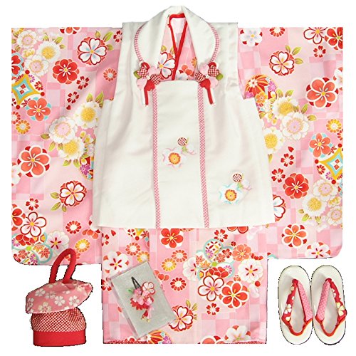 七五三 着物 3歳 女の子被布セット マユミブランド 濃淡ピンク市松グラデーション 桜 金彩使い 被布桜刺繍白色 雛祭り 正月 足袋付セット