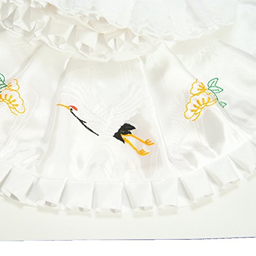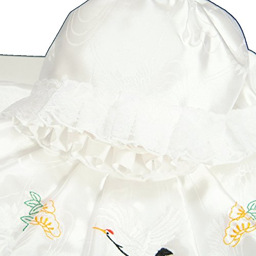 - 涎掛けには縁起物の鶴と松が刺繍されており、フードにはレースがあしらってありますので豪華さもしっかりあります。