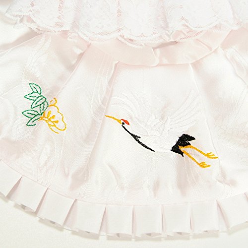 - 涎掛けには縁起物の鶴と松が刺繍されており、フードにはレースがあしらってありますので豪華さもしっかりあります。