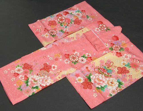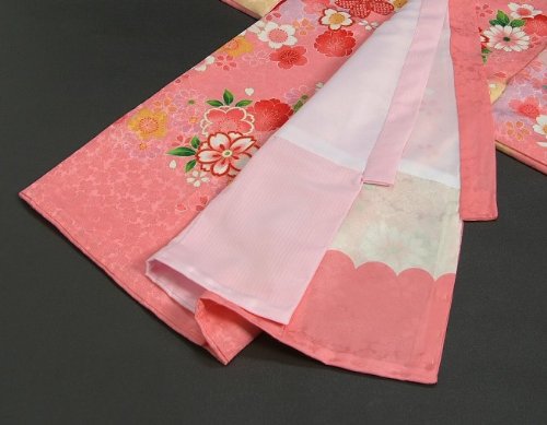 - 生地全体には桜の地紋も入っていて生地感もよいです。前身ごろに紐も付いていて長襦袢もセットですのですぐに御使用していただけます