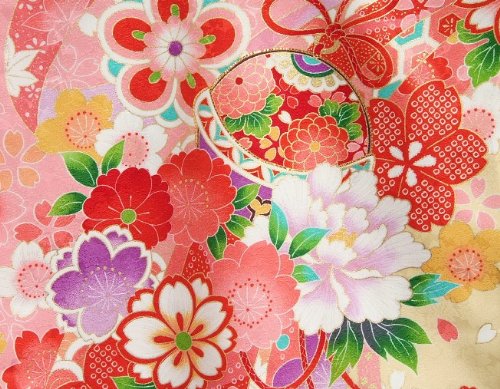 - 鈴の輪郭には金コマ刺繍が上品に使用してあり熨斗や桜、芍薬など様々な縁起柄が御着物を晴れやかに演出します。
