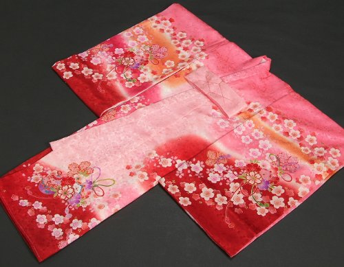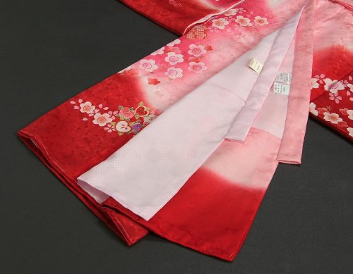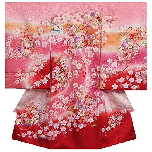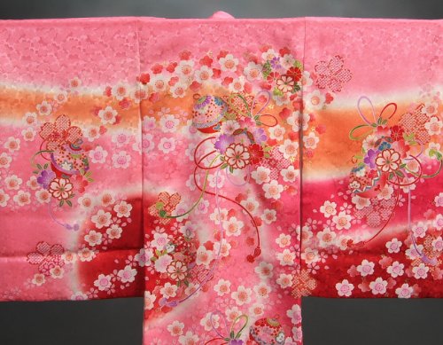 - 濃淡ピンクのグラデーションに裾赤染分けがかわいい女の子のお宮参り着物です。