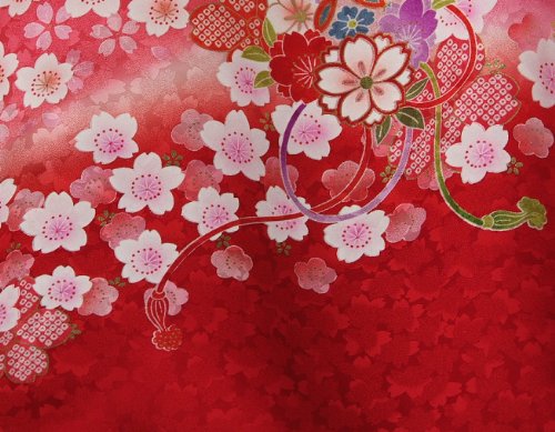 - 柄の鈴の輪郭には金コマ刺繍が上品に使用してあります。柄は桜の大小の柄に桜地紋生地を合わせた桜尽くし文様です。