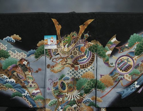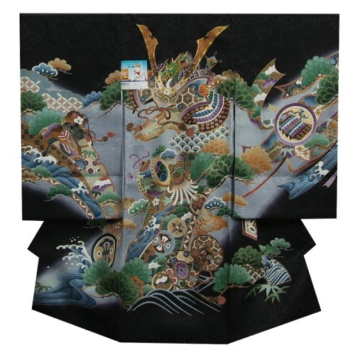 お宮参り着物 正絹男児初着 黒 兜 松竹梅 金糸使い 赤ちゃん着物
