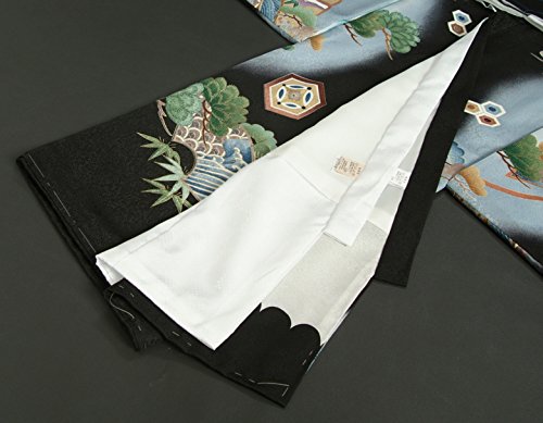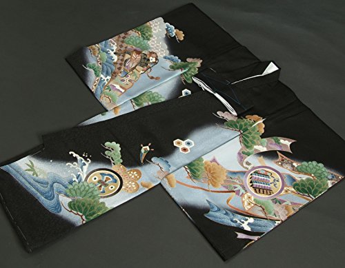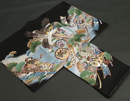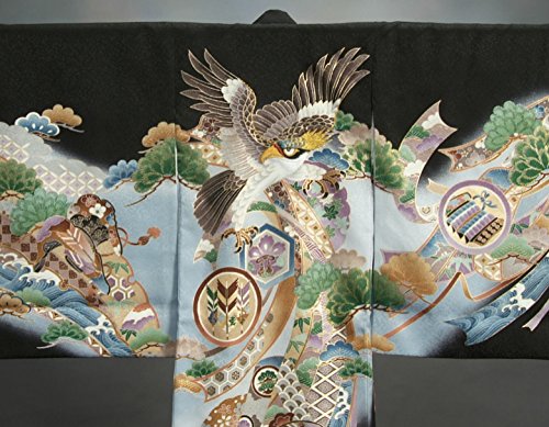 お宮参り着物 正絹男児初着 黒 濃淡ぼかし 刺繍鷹 松竹梅 小槌