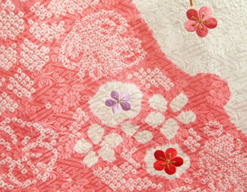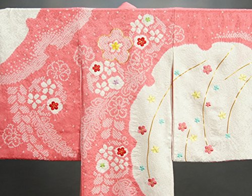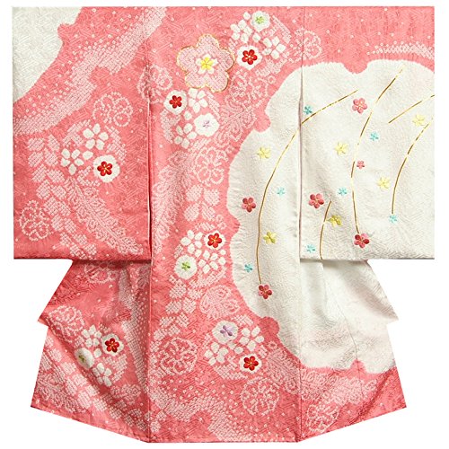 - はっきりしたピンクと白が超かわいいお宮参りの御着物です。染めはすべて手染めで本絞りも入って高級感は抜群です。