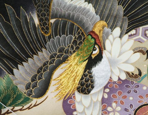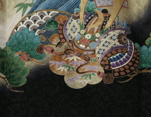 - 柄・特徴 金糸使い鷹 松竹梅 兜 まだら地紋