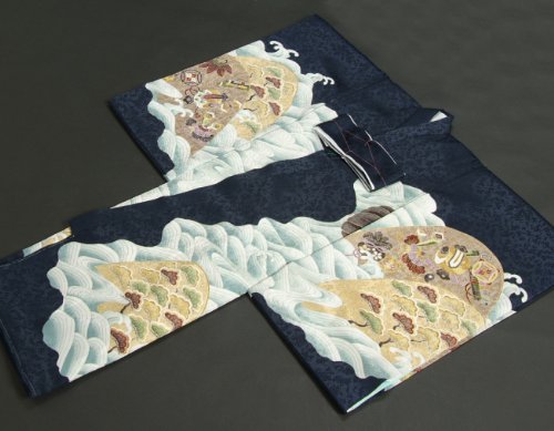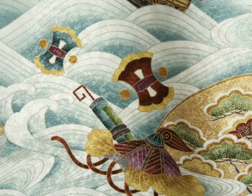 - 柄全体に金彩を波の柄部分には銀彩を使用した華やかな文様になります。生地にはまだら地紋を使用し、ボリュームのある生地を使用していますので生地感もよいです。