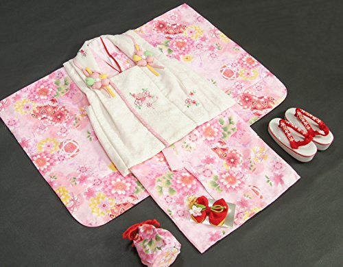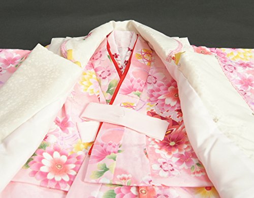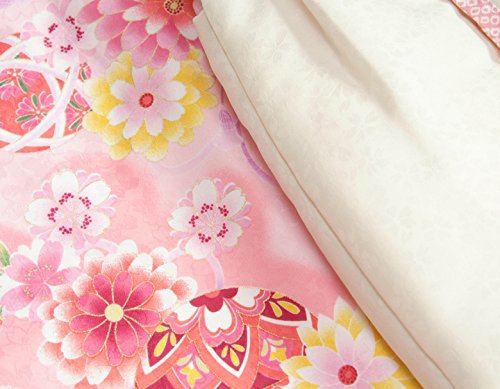 - 柄には桜や牡丹菊などを全体にあしらい被布の襟や前身頃には刺繍が入っていますので豪華さもあります。重ね衿や刺繍半衿も初めから付いて取り付け不要の楽々仕様です。