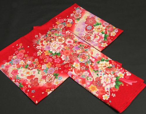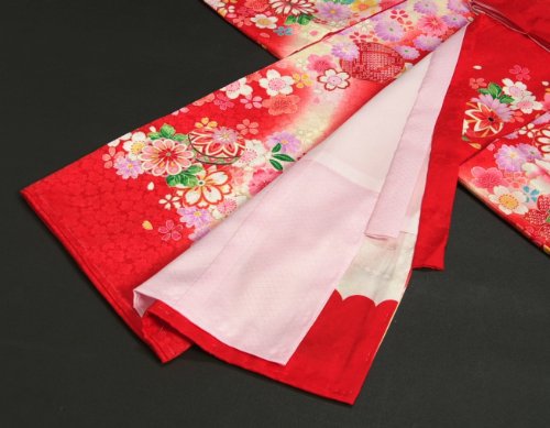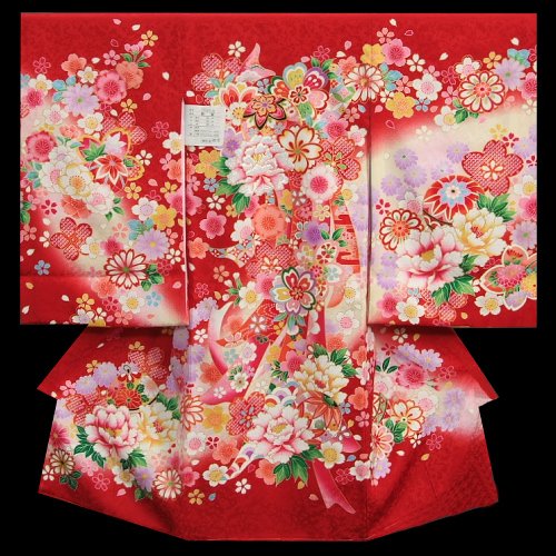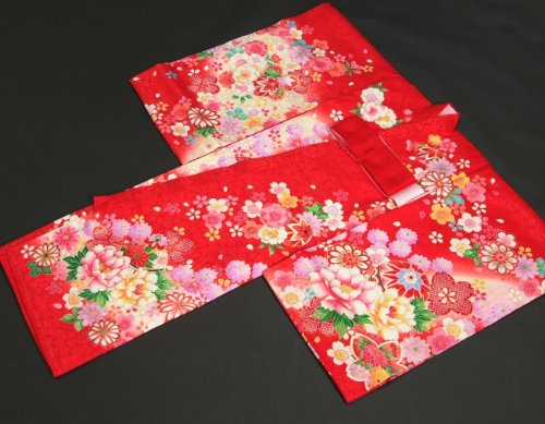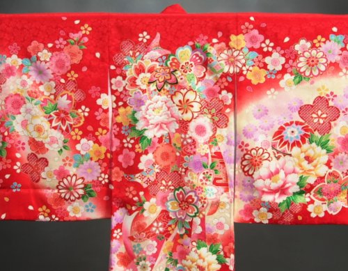 - ベーシックな赤色地を基調とした女の子の御着物です。