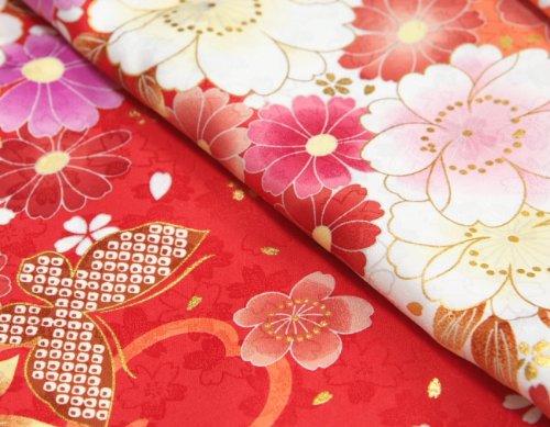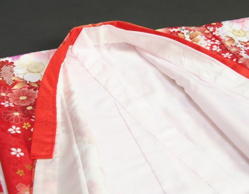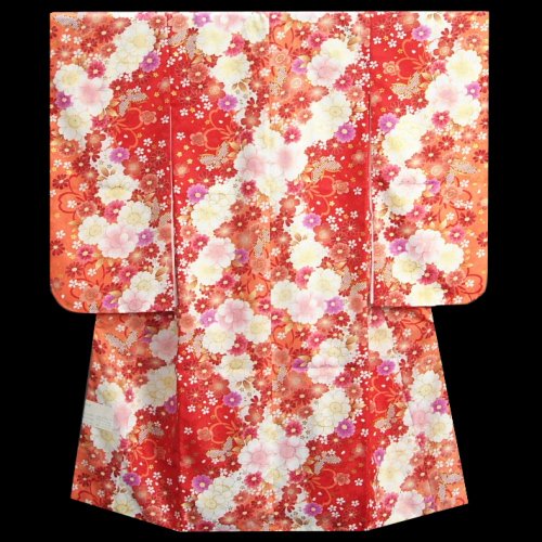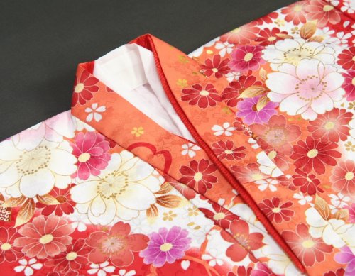 七五三 着物 7歳 女の子 四つ身着物 マユミブランド 濃淡赤地色 大小桜 ピンク 桜地紋生地