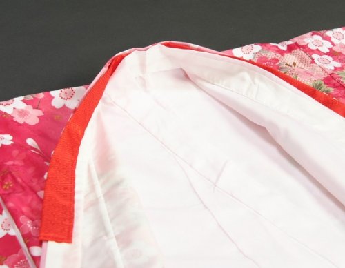 - 襟には赤の重ね衿が初めから縫い付けてあり取り付けの手間も不要です。