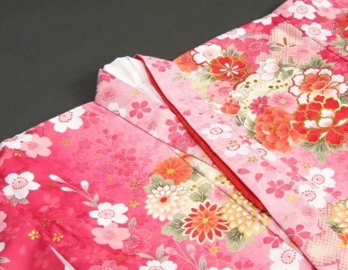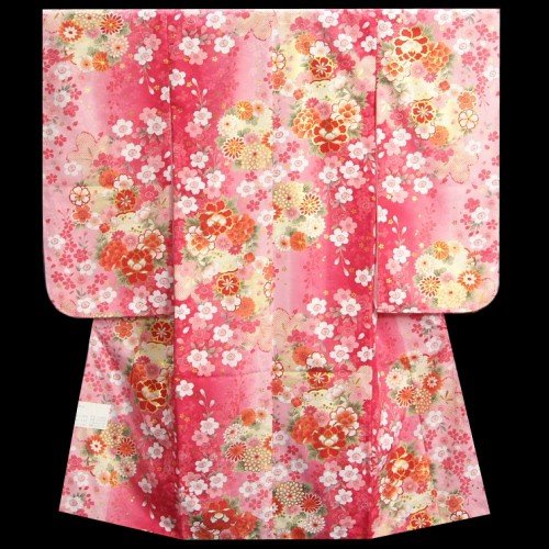 七五三 着物 7歳 女の子 四つ身着物 マユミブランド 濃淡ピンク地色 大小桜 芍薬 桜地紋生地