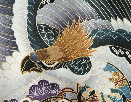 鷹 総疋田柄 鹿の子地紋 金糸刺繍 金彩