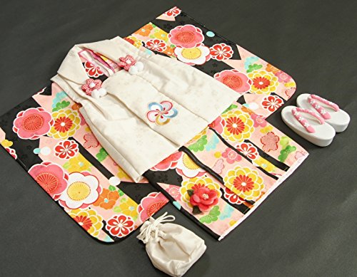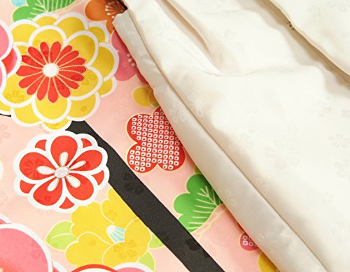 - 刺繍半衿が初めから縫い付けてあり面倒な肩上げと腰上げも初めからしてありますので、お子様の体の厚みにもよりますが身長95cm前後のお子様であればお直しなしで着ていただけます。