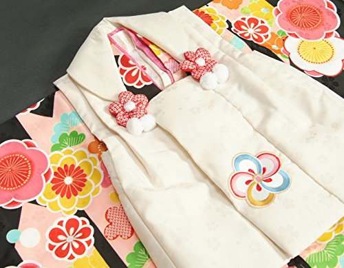 - 重厚感のある黒地にベージュに近いオフホワイトの被布を合わせた小町KIDSブランドの七五三着物3歳被布セットです。被布の前身ごろは刺繍使いになっていて高級感もあります。
