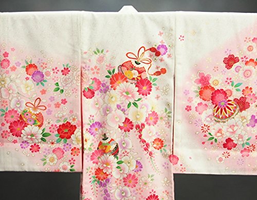 - 白地の御着物にピンクのぼかしが入ったかわいらしい女の子のお宮参りの御着物です。柄域は胡蝶蘭に牡丹、菊、桜などの色鮮やかな華花で構成されています。