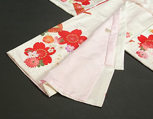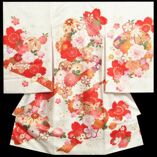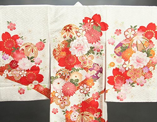 - 白地の御着物に桜や牡丹、菊、梅などの華やかな四季彩華が彩るかわいらしい女の子のお宮参り御着物です。柄にはなんとも目を引く赤い桜、寒緋桜が意匠化されたインパクトのある柄域になります。