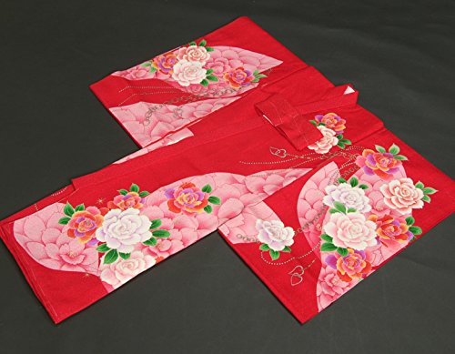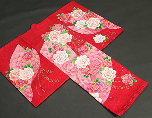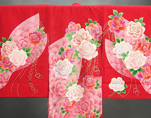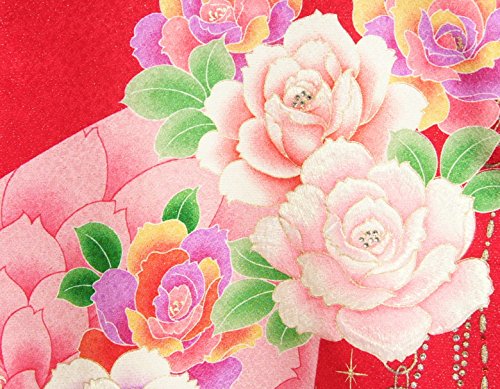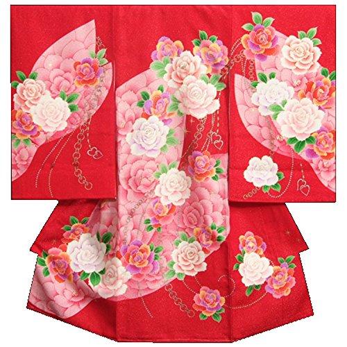 お宮参り 着物 女の子 正絹女児初着 女の子用産着 赤 レインボーローズ 刺繍使い ジルコニア 金通し生地