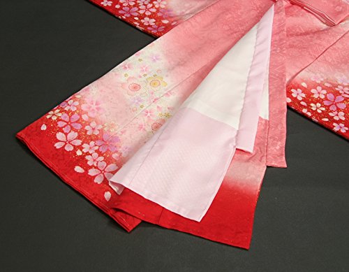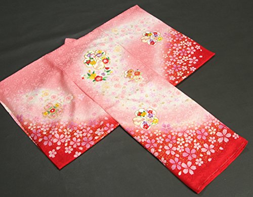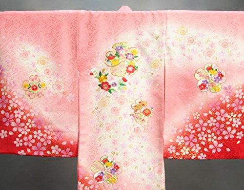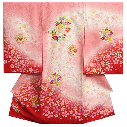 - ピンクの濃淡ボカシに裾を赤で染め分けしたかわいらしい女の子のお宮参り着物です。