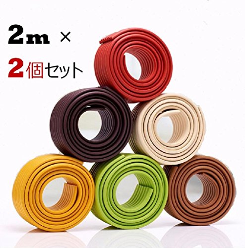 【選べるカラー】赤ちゃん ご年配 ケガ防止に! 波型コーナークッション 2m 2個セット テーブル ベビー ベッド 柱の角にも (2.ブラウン)