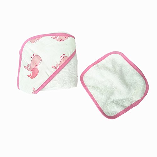 LAT(リー·アンド·タウン)フード付けタオルとウォッシュクロスセット Muslin Cotton Bath Hooded Towel & washcloth set (タオルハンカチ付き・ピンク魚)