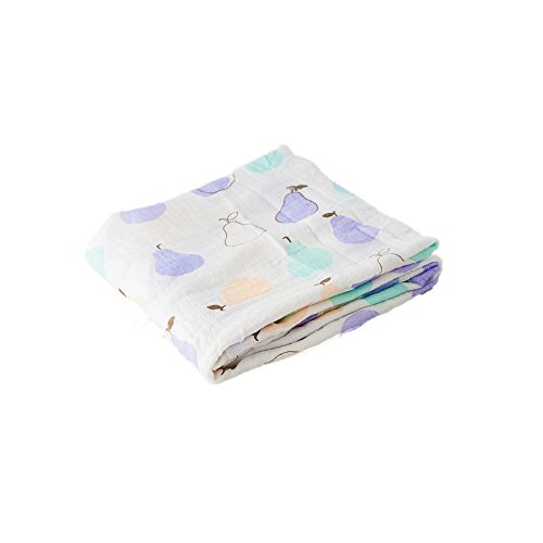 Miracle Baby(ミラクル ベビー)ガーゼブランケット 1レイヤー ベビー モスリン スワドル ブランケット 1 Layers Baby Muslin Swaddle Blanket 1セット 竹繊維100% 多機能 可愛い果物柄 (紫梨)