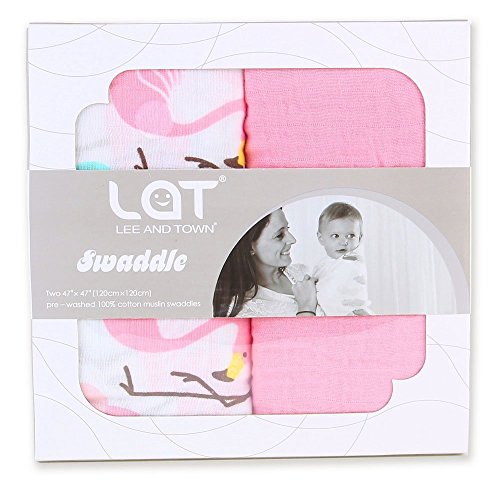 LAT(リー·アンド·タウン) ガーゼおくるみ 高級ベビー用ソフトモスリン ブランケット(多機能) Baby Muslin Swaddle Blanket 2枚セット コットン100% (ピンク)