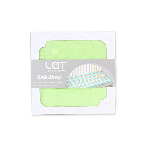 LAT(リー•アンド•タウン)ベットカバー 敷布団カバー ベビー用フィッティングシーツ Baby Muslin fitted crib sheet 1枚セット コットン100% (蛍光グリーン)