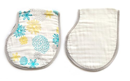 LAT(リー•アンド•タウン)両面用バーピクロス(よだれ拭き) けっぷ用 ベビー モスリンコットン バーピビブ コットン100% Baby pre-washed cotton muslin burpy bib 2枚セット (ブルー花)