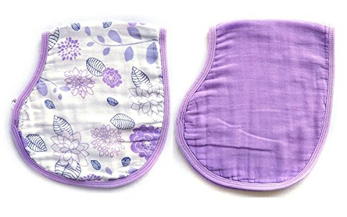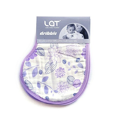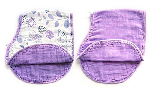 LAT(リー·アンド·タウン)コットン100%の両面用けっぷ布(よだれかけ)ベビー モスリンコットン バーピービブ Baby pre-washed cotton muslin burpy bib 2枚セット(紫花)
