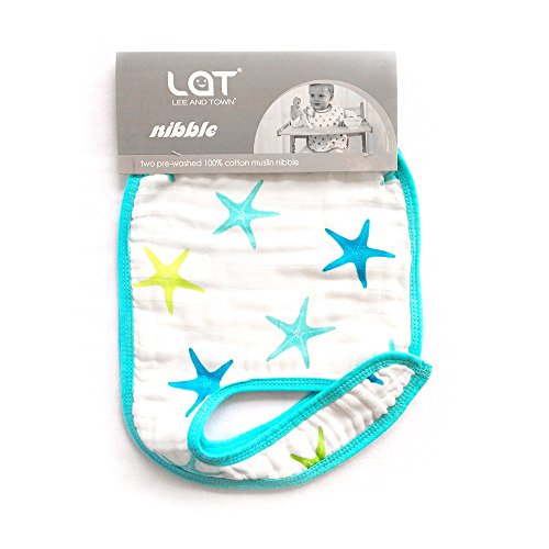 LAT(リー·アンド·タウン)エプロン(よだれかけ) ベビー コットンモスリン スナップビブ Baby pre-washed cotton muslin nibble コットン100% 2枚セット (ブルー)