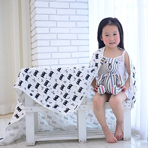 Miracle Baby(ミラクル ベビー)2重ガーゼおくるみ 2レイヤー ベビー モスリン ブランケット(多機能)2 Layers Baby Muslin Swaddle Blanket コットン100% 1セット (黒猫)