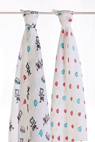 LAT(リー·アンド·タウン) ガーゼおくるみ 高級ベビー用ソフトモスリン ブランケット(多機能) Baby Muslin Swaddle Blanket 2枚セット コットン100% 柄組み合せ (CIRCUS)