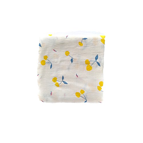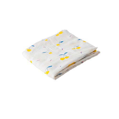 Miracle Baby(ミラクル ベビー)ガーゼブランケット 1レイヤー ベビー モスリン スワドル ブランケット 1 Layers Baby Muslin Swaddle Blanket 1セット 竹繊維100% 多機能 可愛い果物柄 (黄色桜桃)