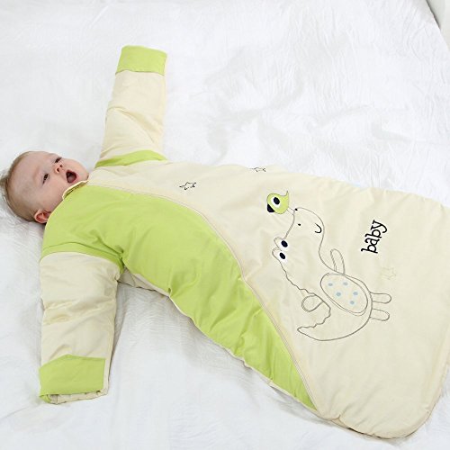 LAT(リー·アンド·タウン)ベビー スリーパー 寝袋 冬向け厚みアップ 防寒 着る布団 袖取り外しOK,Baby winter sleeping bag,Unisex,ほぼ6-18ヶ月,多機能 (グリーン小恐竜)