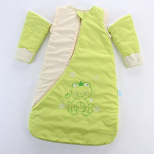 LAT(リー·アンド·タウン)ベビー スリーパー 寝袋 冬向け厚みアップ 防寒 着る布団 袖取り外しOK,Baby winter sleeping bag,Unisex,ほぼ6-18ヶ月,多機能 (グリーン蛙)