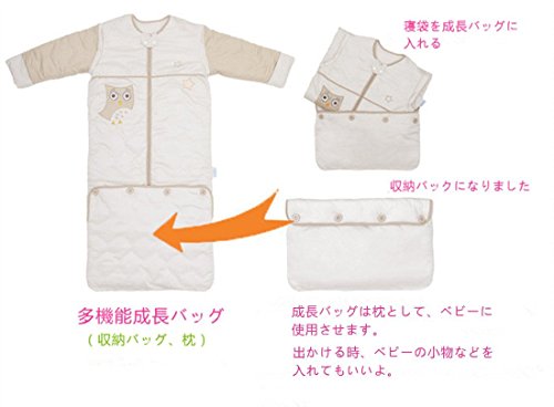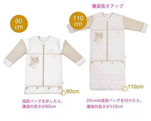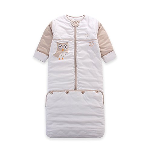 LAT(リー·アンド·タウン)冬向けベビー スリーパー 暖かい寝袋 厚みと長さアップ 防寒 寝冷え防止 着る布団 袖取り外しOK 長さ調整可能 収納バッグあり Baby winter thickness sleeping bag,Unisex,多機能 1セット (ベージュ フクロウ)