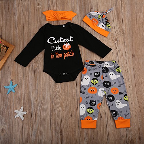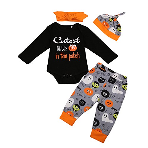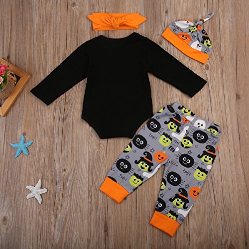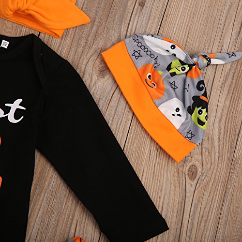 (ラランドリー) laraandlory ハロウィン ベビー かぼちゃ 衣装 4点セット ロンパース&パンツ&帽子&ヘアバンド (80/6-12ヶ月, 黒)