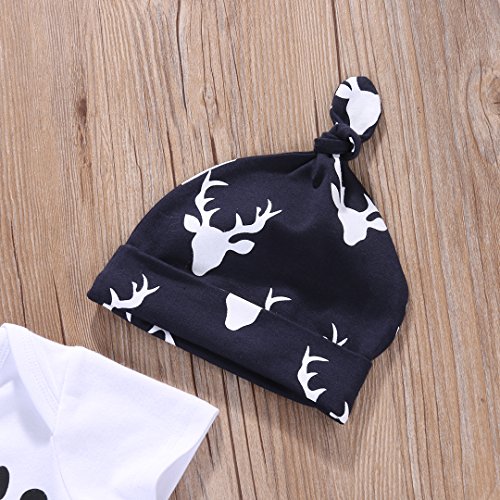 (ラランドリー) laraandlory 女の子 男の子 ベビー服 3点セット(半袖ロンパース・ズボン・帽子のセット) (70/0-3ヶ月, ダークブルー)