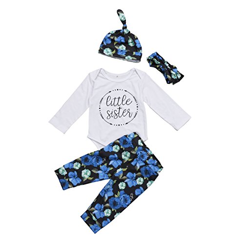 (ラランドリー) laraandlory 秋 冬 ベビー服 女の子 男の子 4点セット ロンパース&パンツ&ヘアバンド&帽子 フルプリント 花柄 (80/6-12ヶ月, ホワイト)