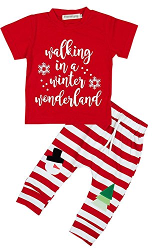 - セット内容:赤の短袖Tシャツ+赤白ボーターのパンツ(クリスマスツリーと雪だるま付き