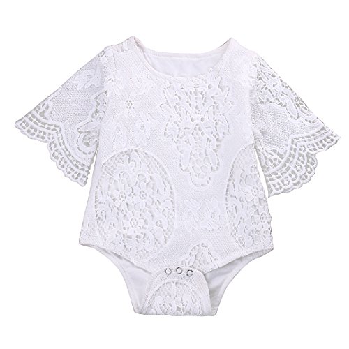 (ラランドリー) laraandlory 夏 レース 半袖 子供用 女の子 ロンパース カバーオール (60/0-3ヶ月, ホワイト)
