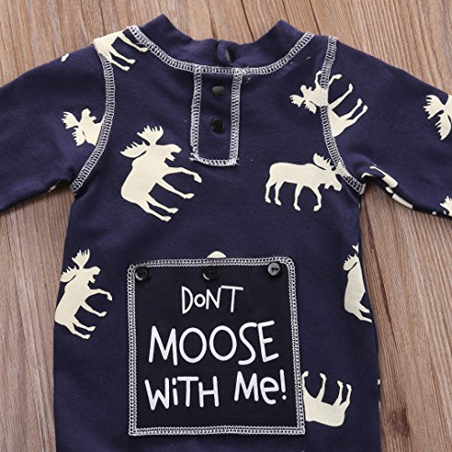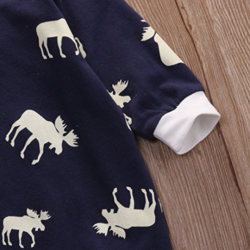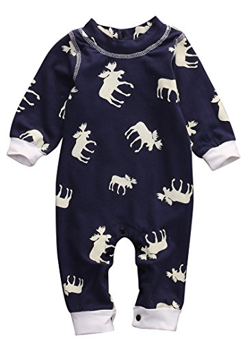 (ラランドリー) laraandlory 秋冬 ベビー 赤ちゃん 子供服 長袖 カバーオール ロンパース シカ柄 ストレッチ 男の子 (90/6-12ヶ月, 紺色)