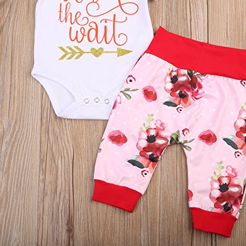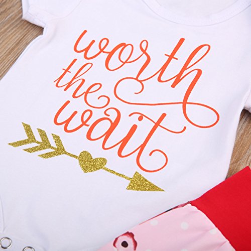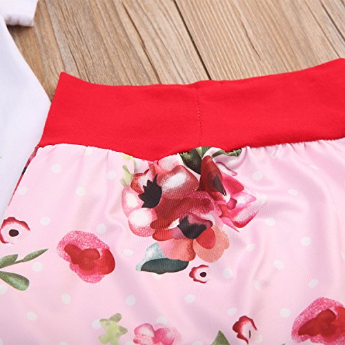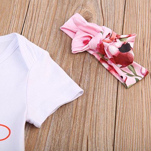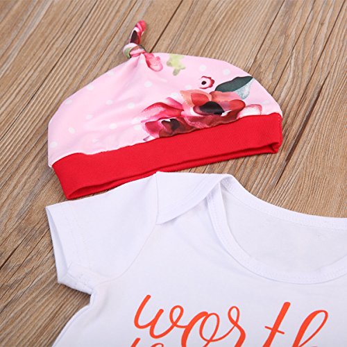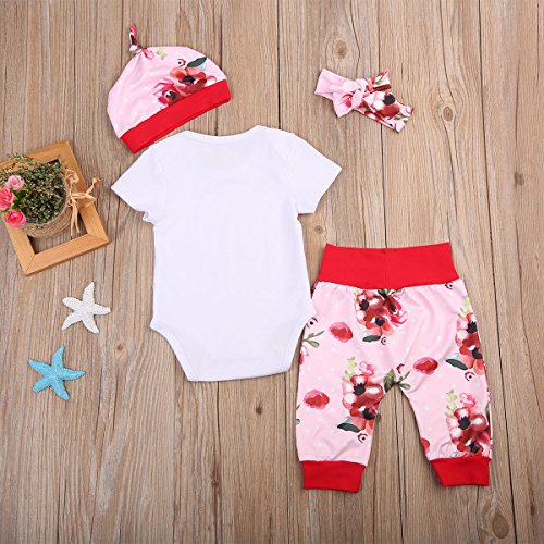 (ラランドリー) laraandlory 夏 女の子 男の子 ベビー服 4点セット (レタープリント半袖ロンパース+ 花柄ズボン+ヘアバンド+帽子) (90/9-18ヶ月, 赤)
