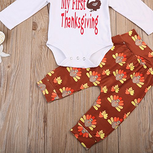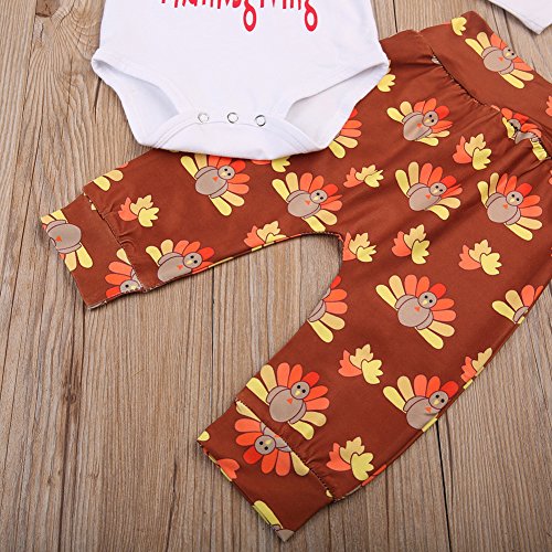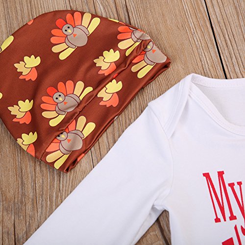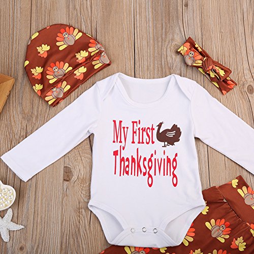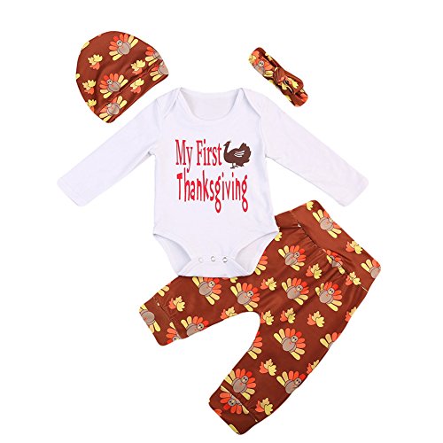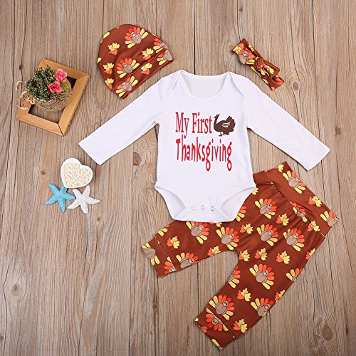 (ラランドリー) laraandlory サンクスギビングデー 4点セット(ロングパンツ・長袖ロンパース・帽子・ヘアバンド)新生児 男の子 女の子 ベビー服 (80/3-9ヶ月, オレンジ)