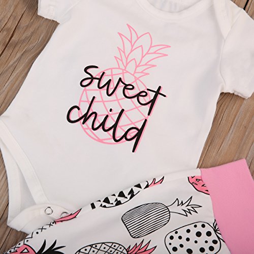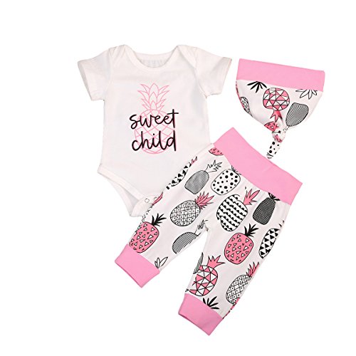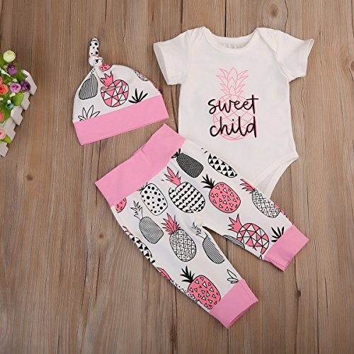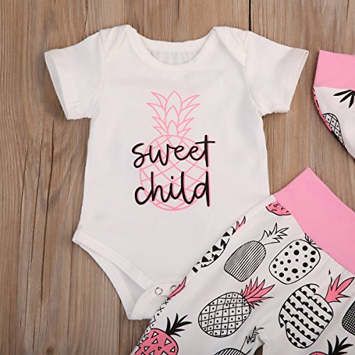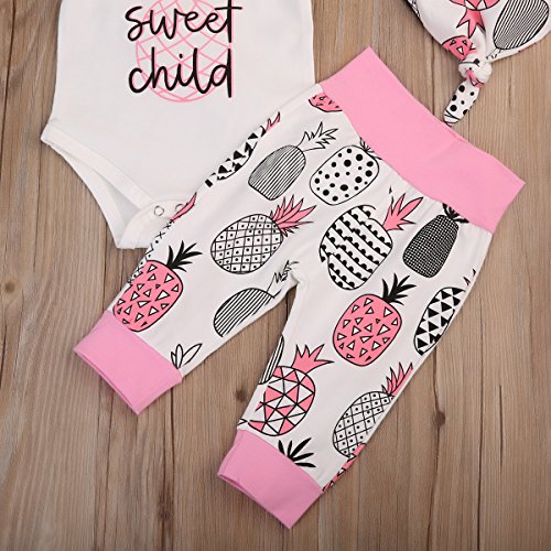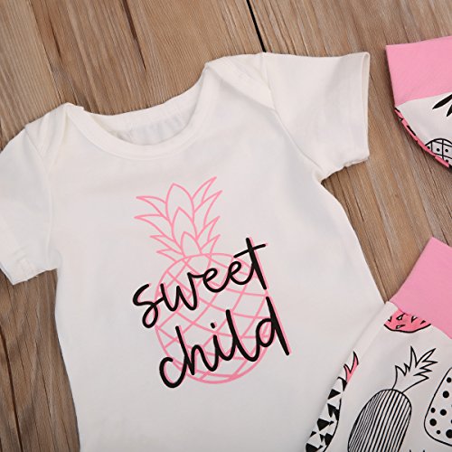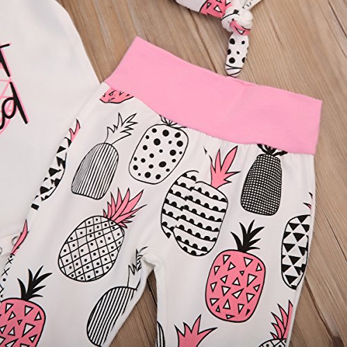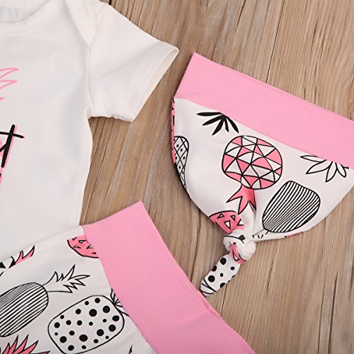 (ラランドリー) laraandlory ベビー 女の子 かわいい 3点セット ロンパース&パンツ&帽子 パイナップル柄 出産祝い(90/12-18ヶ月, ピンク)