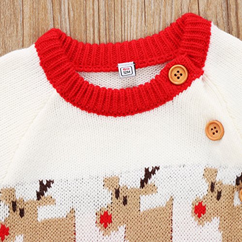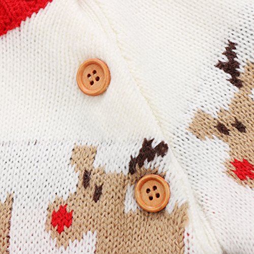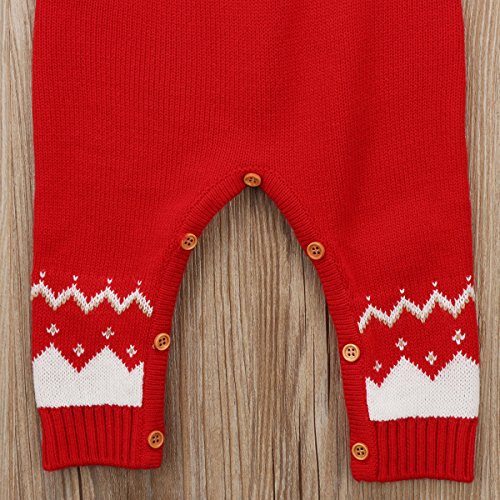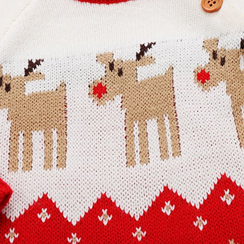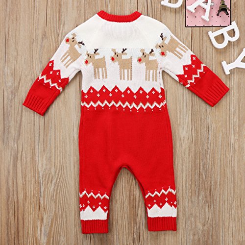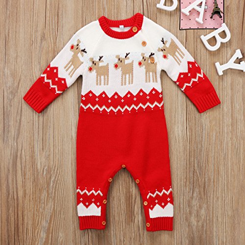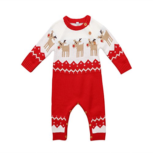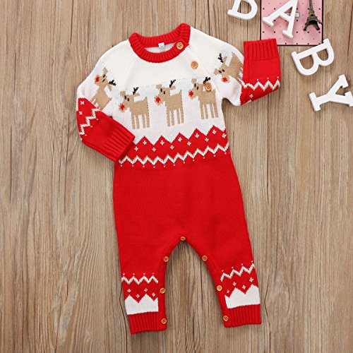 長袖ロンパース クリスマス トナカイ ロンパース 長袖セーター 男の子 女の子 プレゼント (レッド, 80)