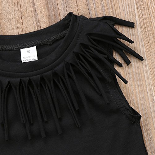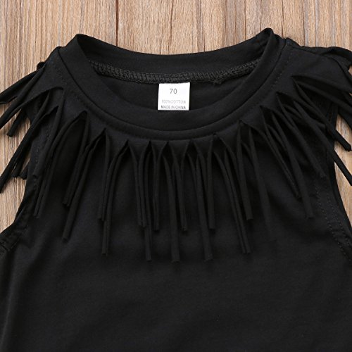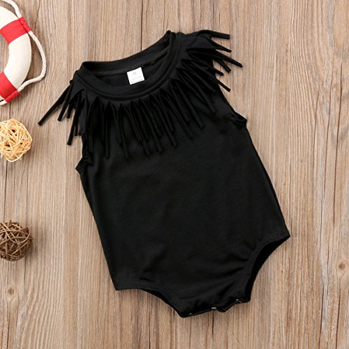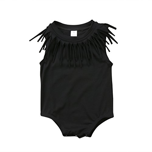 (ラランドリー)laraandlory ベビー服 女の子 肩 タッセル付き ロンパース カバーオール 春 夏 お出かけ オシャレ (80/6-12ヶ月, ブラック)