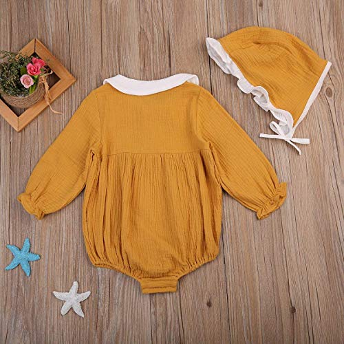 (ラランドリー) laraandlory 女の子 ベビーロンパース オールインワン 長袖 綿 帽子付き 襟には刺繍あり (80/6-12ヶ月, イエロー)